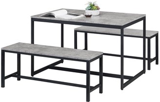 The table, chairs and bench are all made from pine wood. We can get a country style with a bare wooden material. Opting for a small bench means you can tuck it away under your table when not in use, whereas a larger dining bench with back, for instance, will make more of a statement piece that you'll want to show off. Dining table bench sets are not only the future, they are now! • tapered black powder coated steel legs.